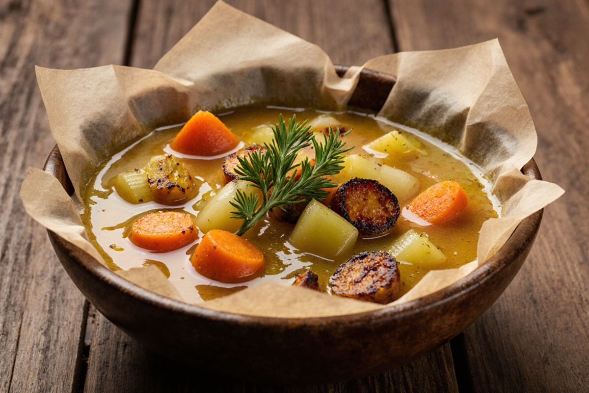 - Schritt 3: Nach dem Rösten die Brühe oder das Wasser hinzufügen und die Suppe bei 160-180°C für 20-30 Minuten garen.